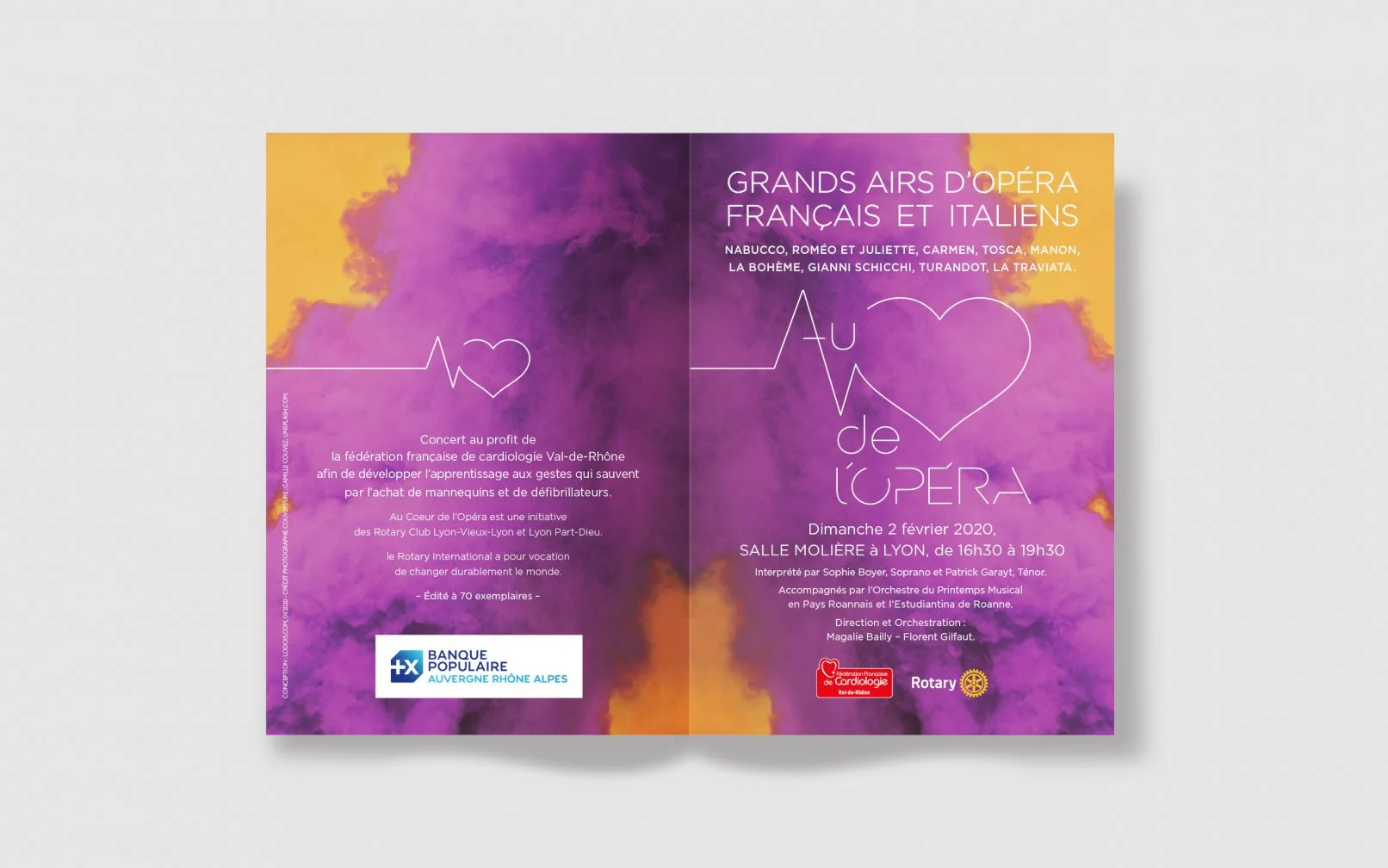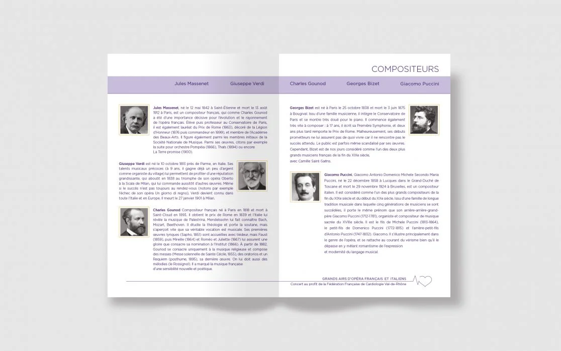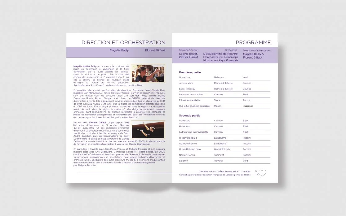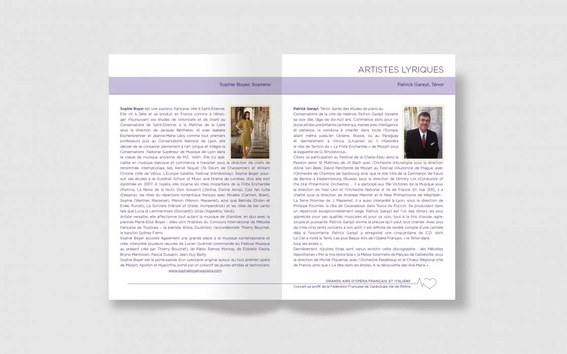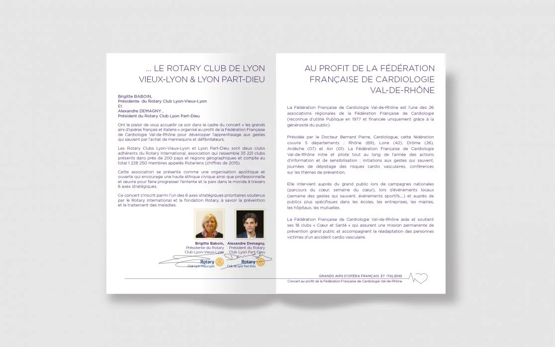 Création Logotype & Branding pour La Fédération française de cardiologie Val-de-Rhône, qui a pour objectif de réduire le nombre de décès et d’accidents d’origine cardiovasculaire. Les Rotary Clubs Lyon-Vieux-Lyon et Lyon Part-Dieu ont organisé : « les grands airs d’opéras français et italiens », afin de récolter des fond pour développer l’apprentissage aux gestes qui sauvent.